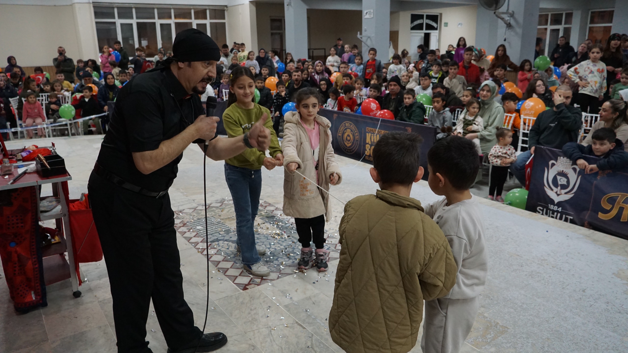 Şuhut Belediyesi Kültür ve Sosyal İşler Müdürlüğü’nün organizasyonuyla ara tatilde hayata geçirilen programda çocuklar doyasıya eğlenirken aileler de bu coşkuya ortak oldu. Belediye Düğün Salonu’nda gerçekleştirilen etkinlik çocukların yoğun ilgisiyle adeta şenlik havasına büründü. Renkli görüntülere sahne olan etkinliğin en dikkat çeken anlarından biri sahne alan Sihirbaz İbrahim Oral’ın gösterileri oldu.