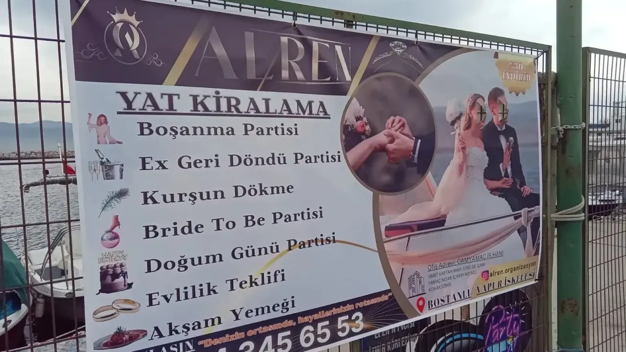 Nefes'te yer alan habere göre, asılan bir afişte, yat kiralama kapsamında sunulan organizasyonlar arasında “Boşanma Partisi” ifadesinin açık şekilde yer alması dikkati çekerken, aynı listede “Ex Geri Döndü Partisi”, “Bride to Be”, “Doğum Günü Partisi”, “Evlilik Teklifi” ve “Akşam Yemeği” seçeneklerinin bulunması, ilişkilerle ilgili sosyal alışkanlıkların nasıl değiştiğini gözler önüne serdi.